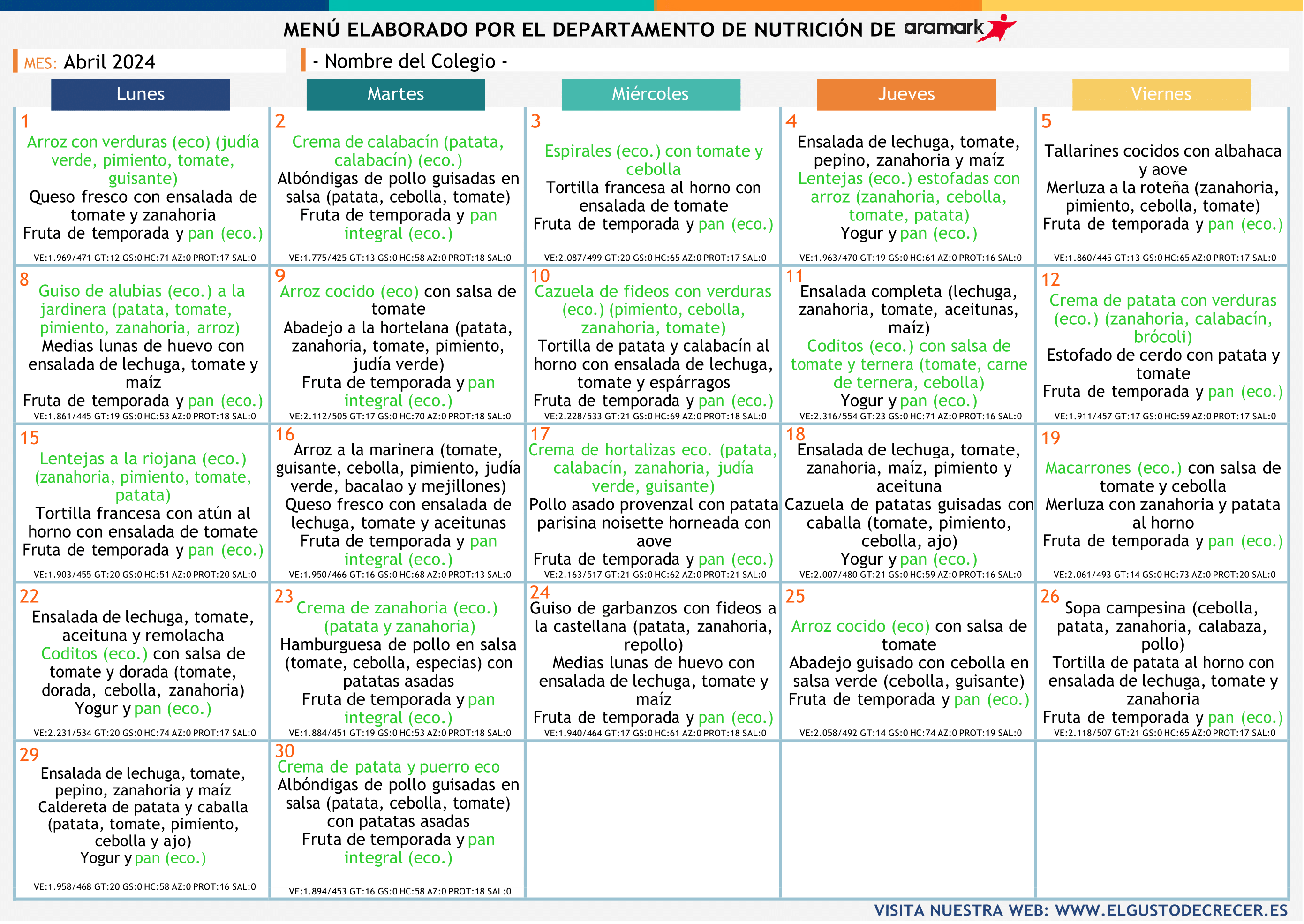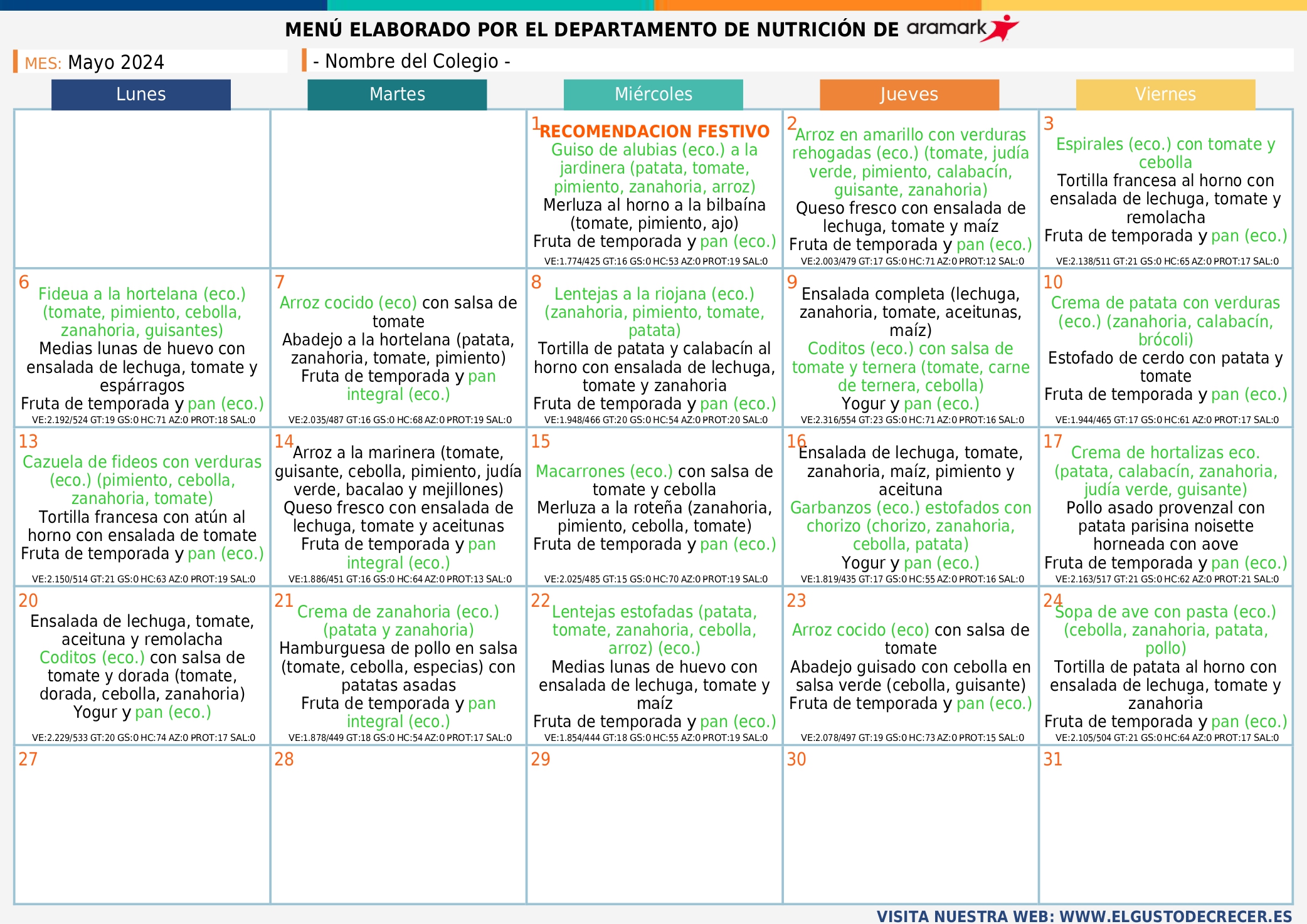 Menú Octubre